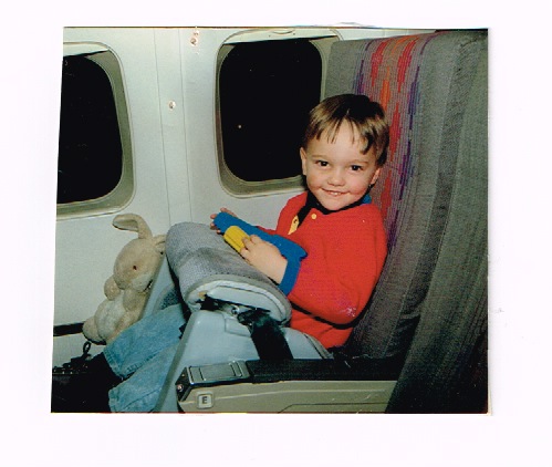 I'm not sure where he was going in this pic, but his bunny was always with him.  Look at those chubby cheeks!  You just wanted to squeeze them!